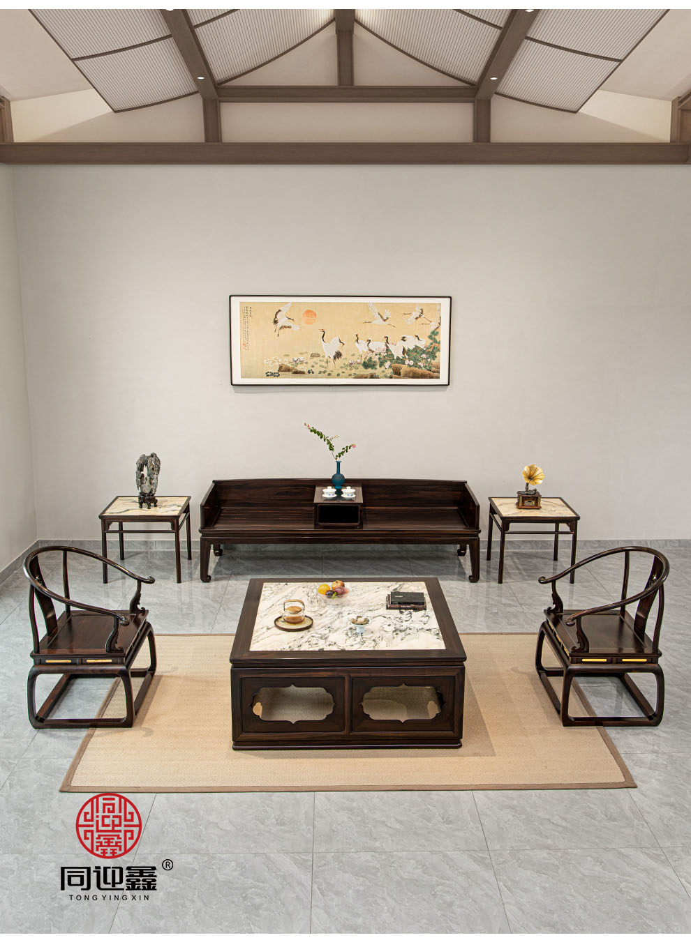 大叶紫檀云石大茶几